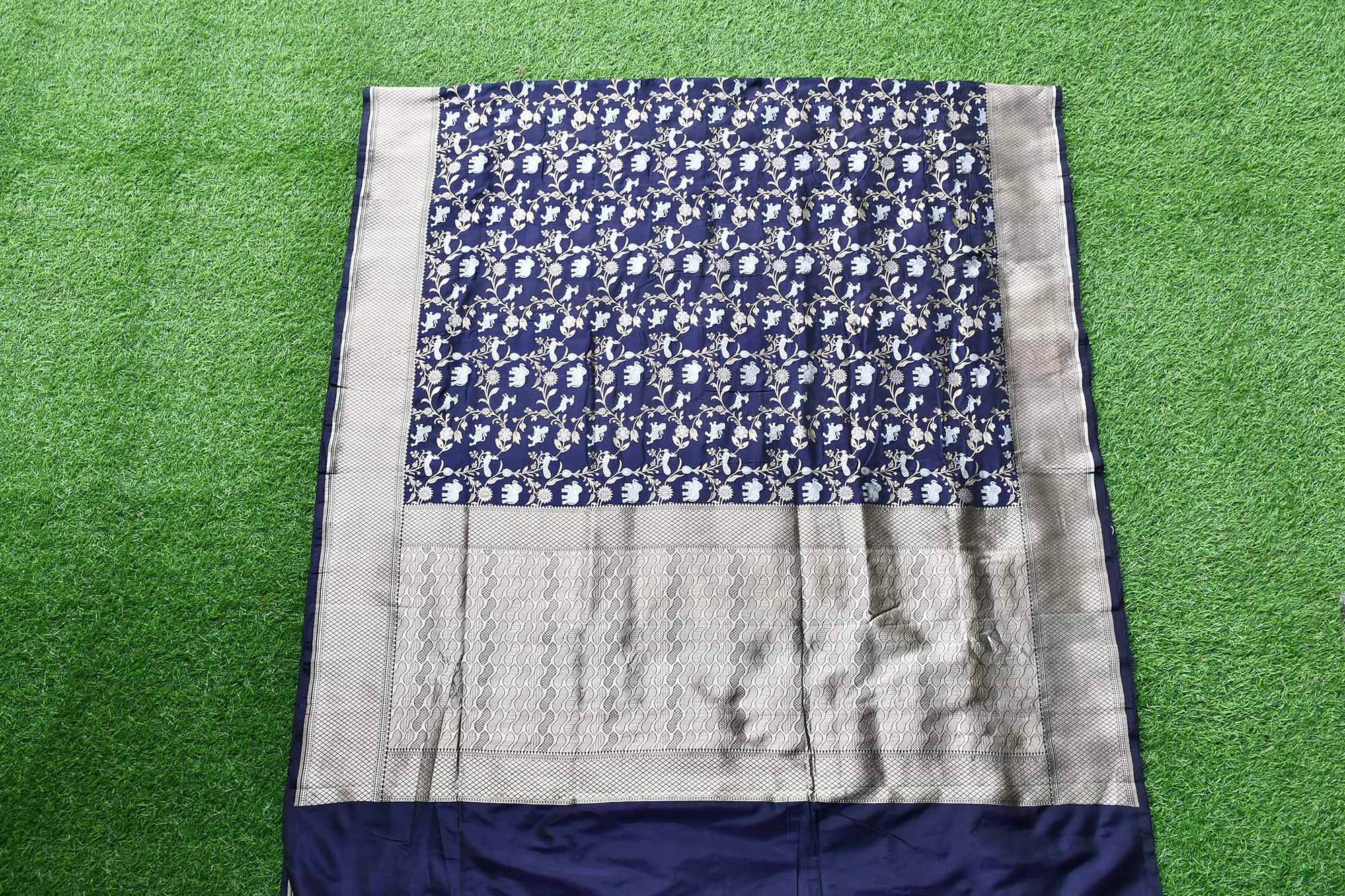 banarasi handloom Dark blue Sona rupa shikargarh Katan silk saree