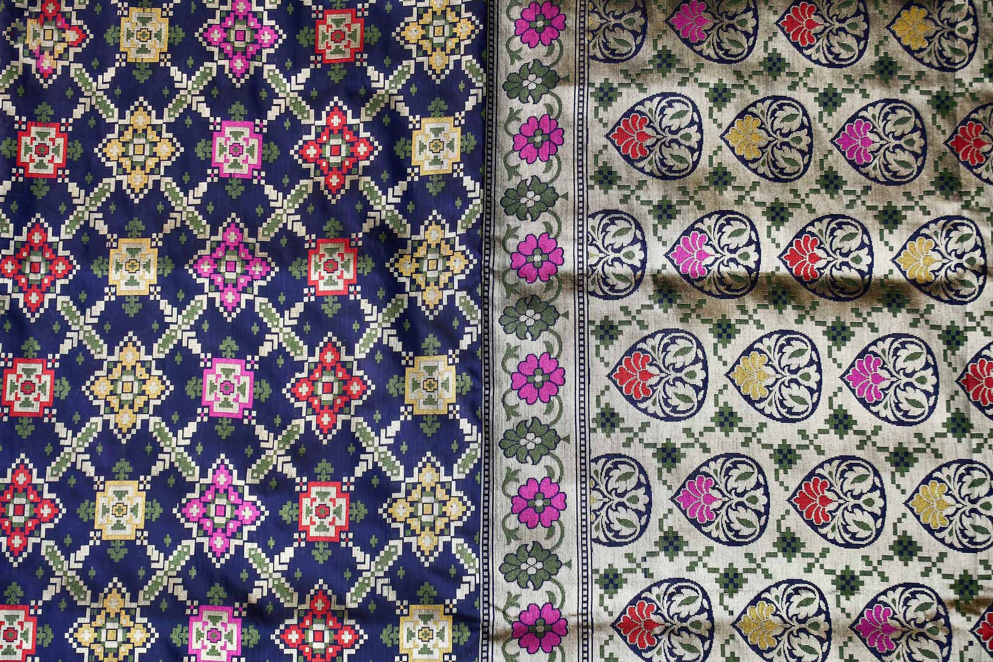 banarasi handloom Deep Navy Blue Patola Cutwork Multi Meena Katan Silk saree