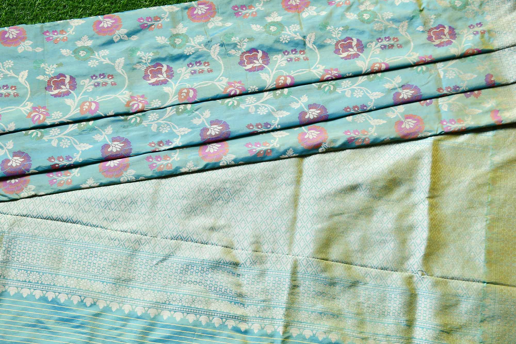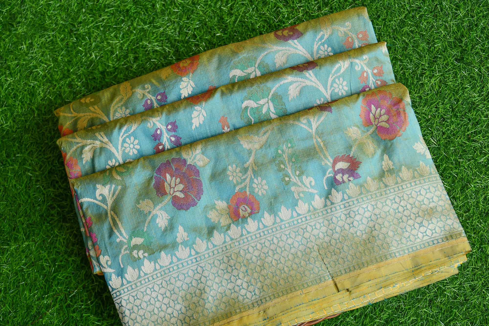 banarasi handloom Sea green katan silk multi meena jaal saree