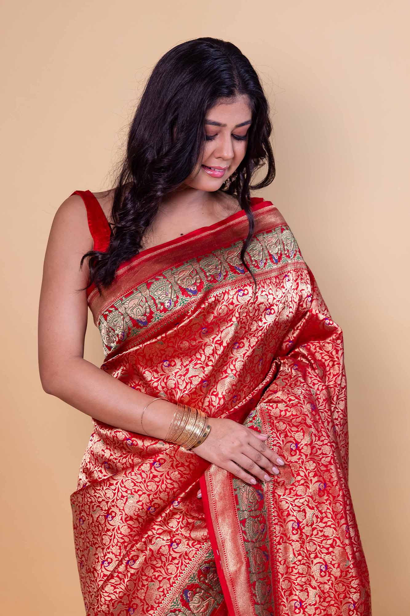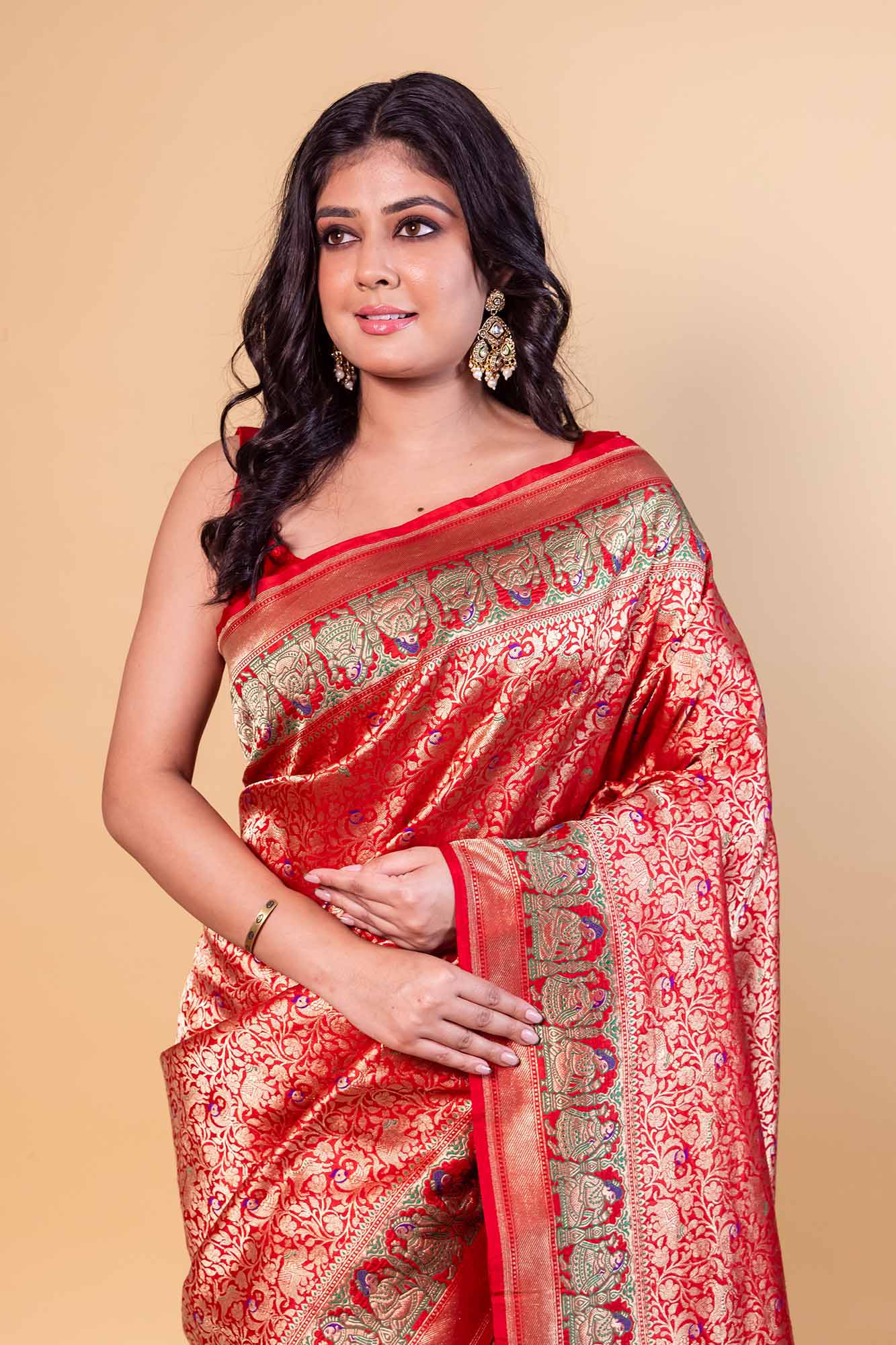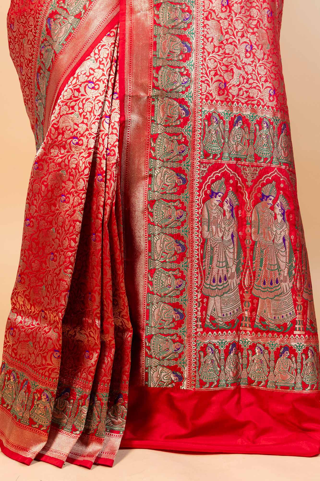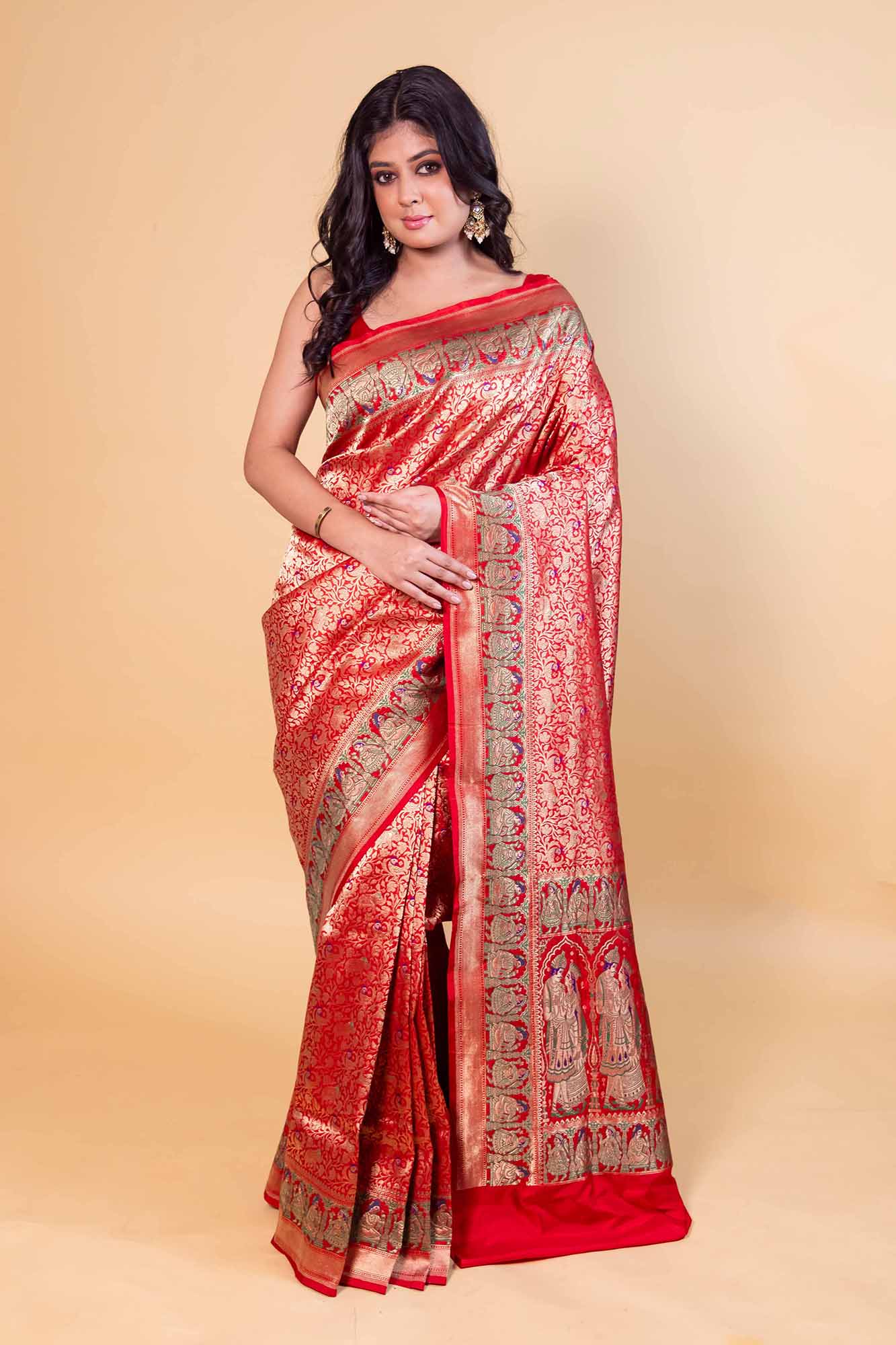 Handloom Baluchari Banarasi Katan silk saree showcasing classic woven motifs and rich storytelling craftsmanship. Expertly handcrafted by skilled artisans, this pure silk Banarasi saree features a luxurious drape, intricate detailing, and timeless elegance ideal for weddings, festive occasions, and heritage collections.