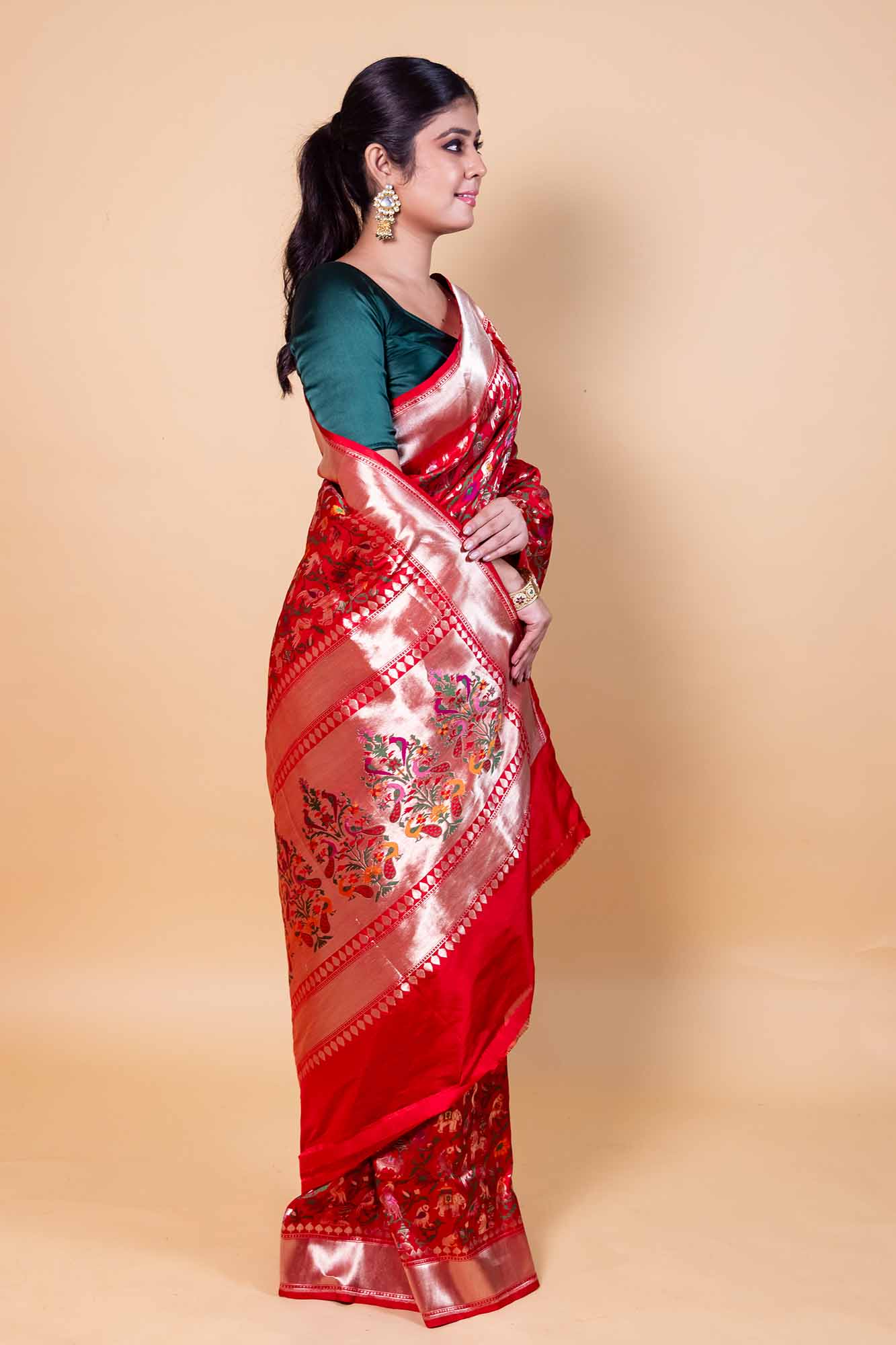 Handloom banarasi pure katan silk multi meena Shikargah saree