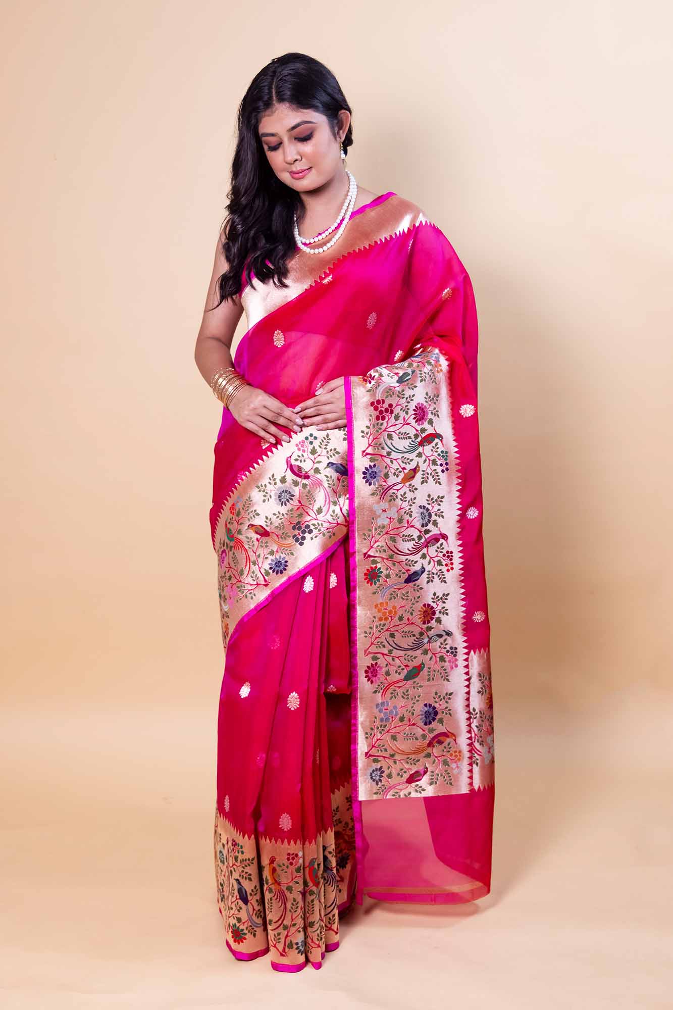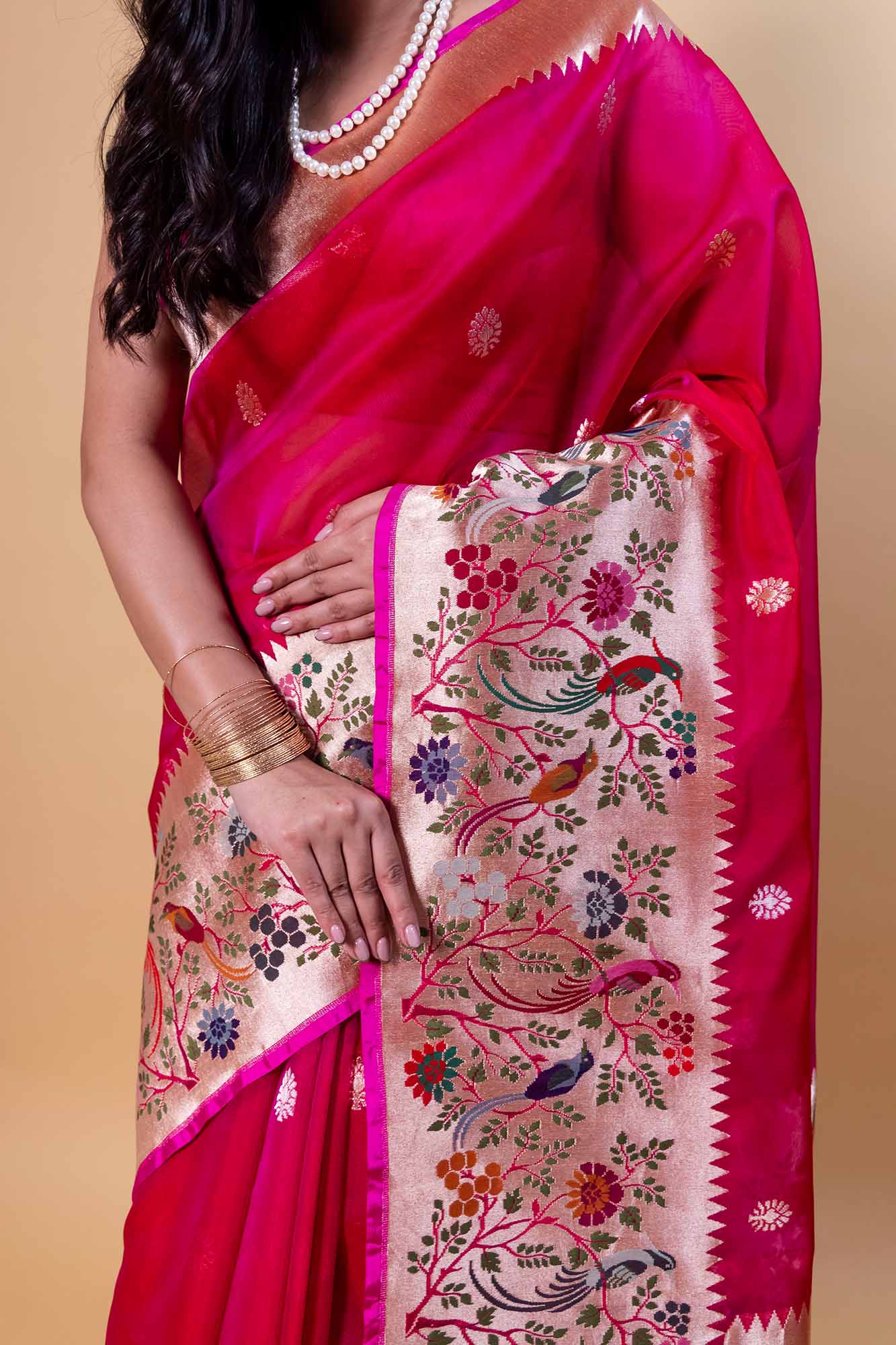 handloom banarasi pure katan silk paithani border saree