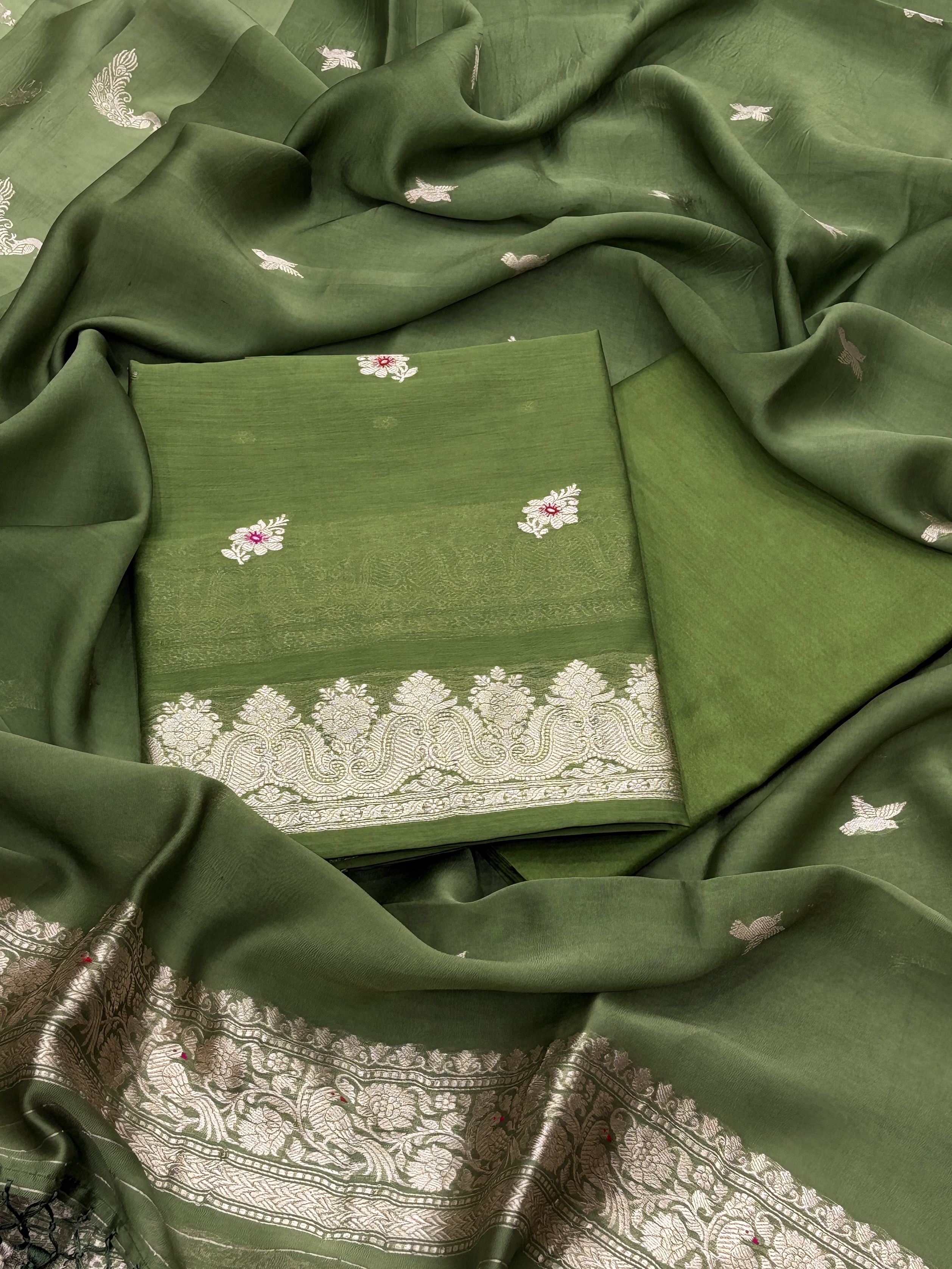HANDLOOM PURE KADWA SUIT SETS • Top: Pure chanderi silk kadwa booti suit• Dupatta: Pure kora georgette silk kadwa booti dupatta• Bottom: Pure chanderi silk weaved Services: Sarees, Dress Materials, Dupattas, Fabrics, Lehenga. Website: www.reshambanaras.in Recent Works Pure silk rangkat dupatta Dupattas Pure katan silk lehenga Lehenga Brocade handloom fabric Fabrics